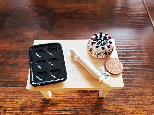 Backblech für kleine Herzkekse. Schön zu dekorieren auf einem kleinen Tisch oder Regal.