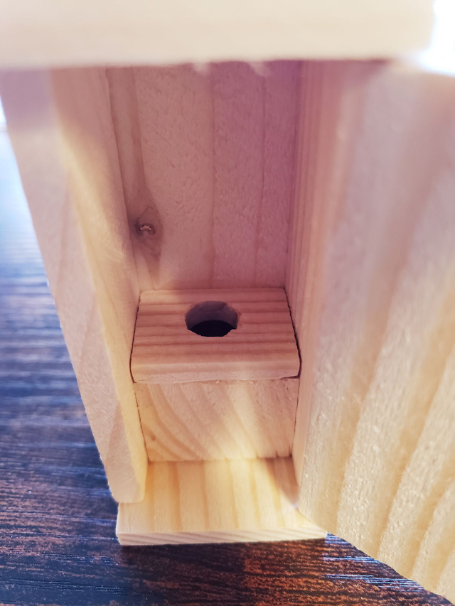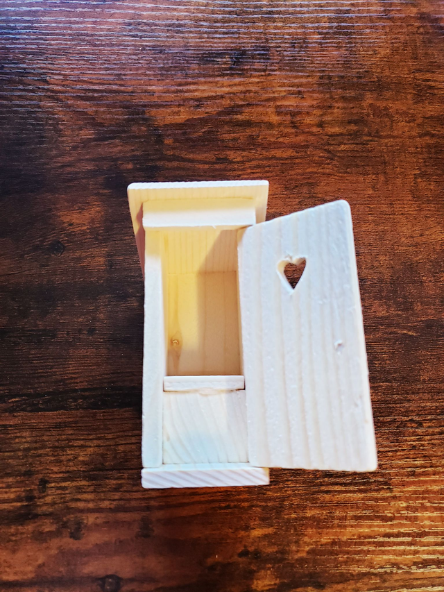 Klohaus für den Wichtel mit kleinem Herzchen in der Türe. Im Inneren kann man sich bequem auf das Loch setzten.