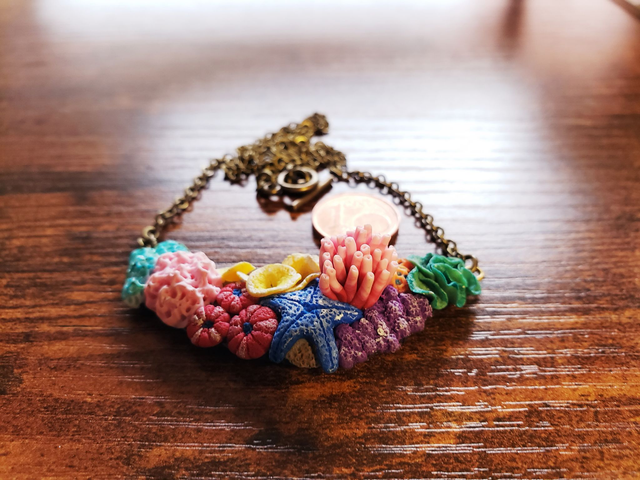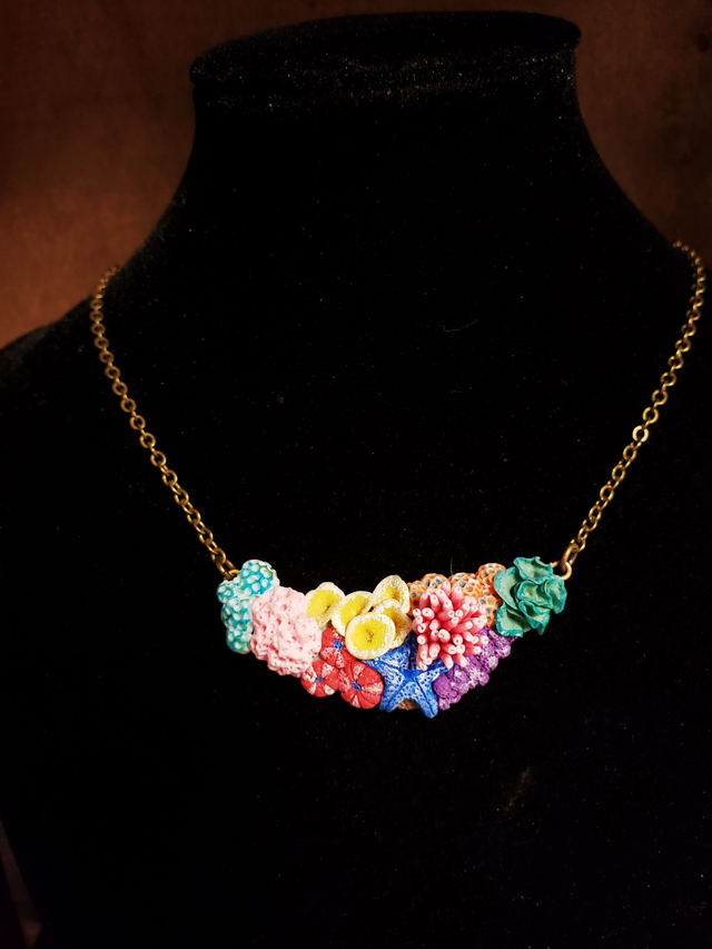 Ein kleines Korallenriff für den Hals aus Fimo gearbeitet in 3D-Optik.