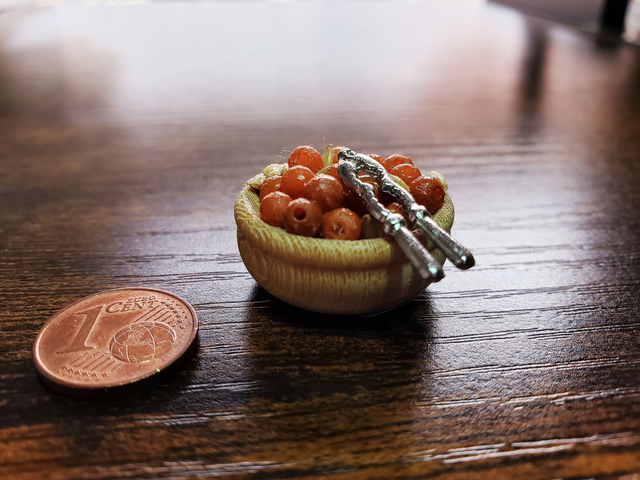 Leckere Nussschale mit Nussknacker für den Tisch oder die Bank.