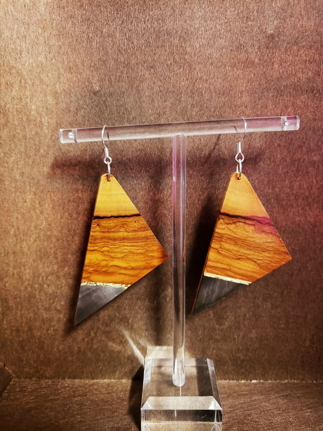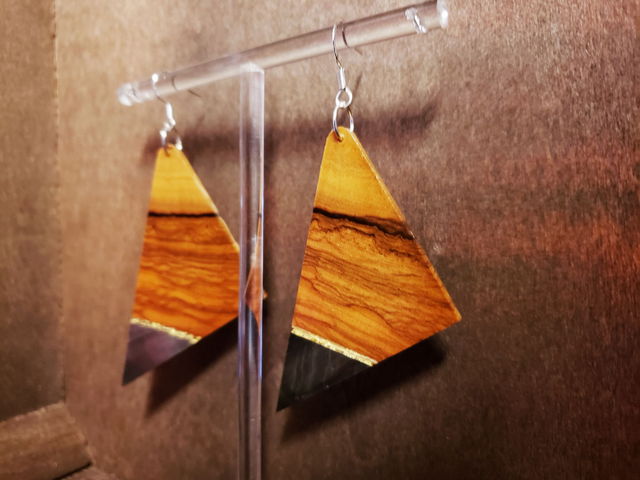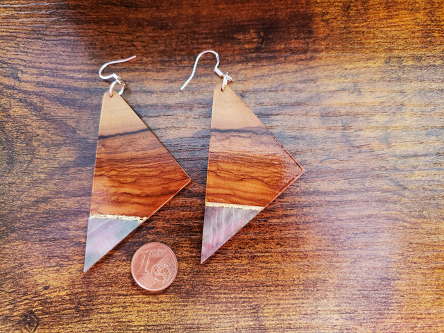 Das Perlmutt ergänzt die einzigartige Struktur der wilden Olive - veredelt mit einer Goldkante.